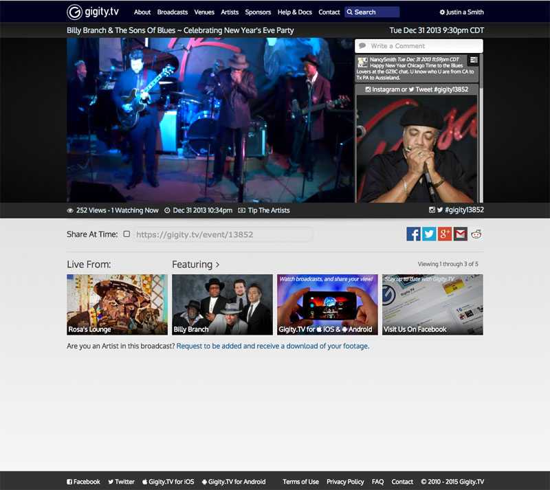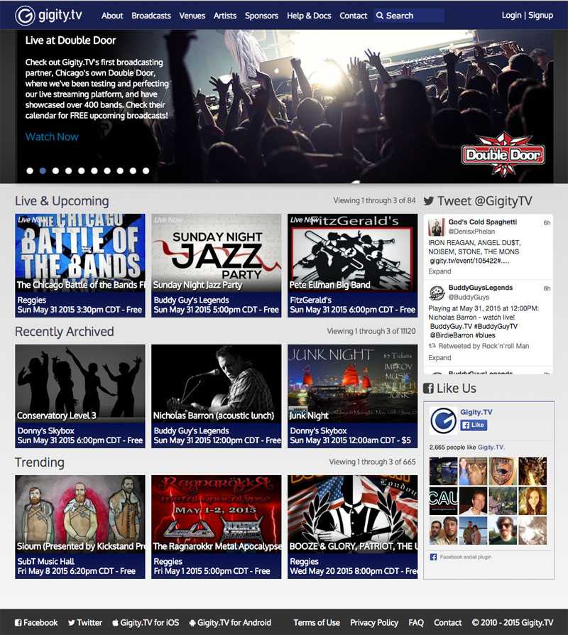 When I was first getting in to building websites, Gigity.tv gave me the chance that I needed to start getting serious and actually build out a production-ready site. Gigity is a small startup based in Chicago that provides streaming services for venues all around the nation. When I started my internship there, the entire company consisted of two guys, one permanent installation at the Double Door, and one mobile installation that we would cart around to different venues. Five years later it’s still just two guys running the whole operation, but they’ve grown their reach drastically, and are now installed in 18 venues in Chicago, Hollywood, Nashville, and Austin.
