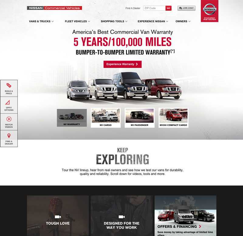 Nissan Commercial Vehicles is, you guessed it, the commercial branch of Nissan. They manufacture a series of fantastic work vehicles that you’ve undoubtedly seen all over town–as soon as you know what one looks like, you can’t stop seeing it. I had the pleasure of working with a small team from Critical Mass to redesign the site and introduce a lot of new campaigns to showcase how Nissan was making an excellent work vehicle.