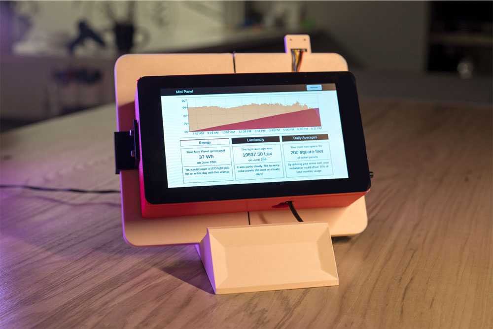 We wanted our calculator to be a useful tool for getting accurate information about what a solar installation could do for a residential customer, but we also wanted to use it to get folks excited about the solar potential of their home. We came up with the idea of taking the calculator out of the digital space and into the physical world. What better way to excite people than to actually show them a panel at work?