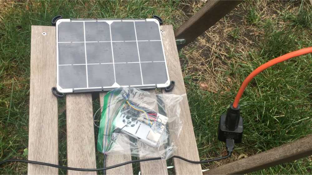 I decided to use a Raspberry Pi as the brain for the unit due to its size, cost, and availability. The cable that ran from the solar panel was converted to discharge into a voltage sensor, which was then sent to a database on the Pi. That voltage data was great to see coming through, but we were still missing a part of the puzzle–we needed to know what the sun was doing while we were getting those particular voltage readings. To account for that, I added a TSL2591 luminosity sensor to the project. This sensor lets us measure the amount of visible and infrared light, which helps us get a feel for the external conditions that the prototype was being tested in. After a rough assembly of all of these parts, I went out on a nice summer day to field test the components.